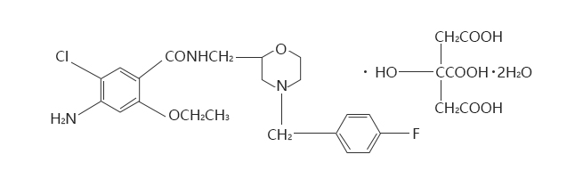 化學(xué)名稱(chēng):4-氨基-5-氯-2-乙氧基-N-[[4-(4-氟芐基)-2-嗎啉基]甲基]苯甲酰胺枸櫞酸二水合物。